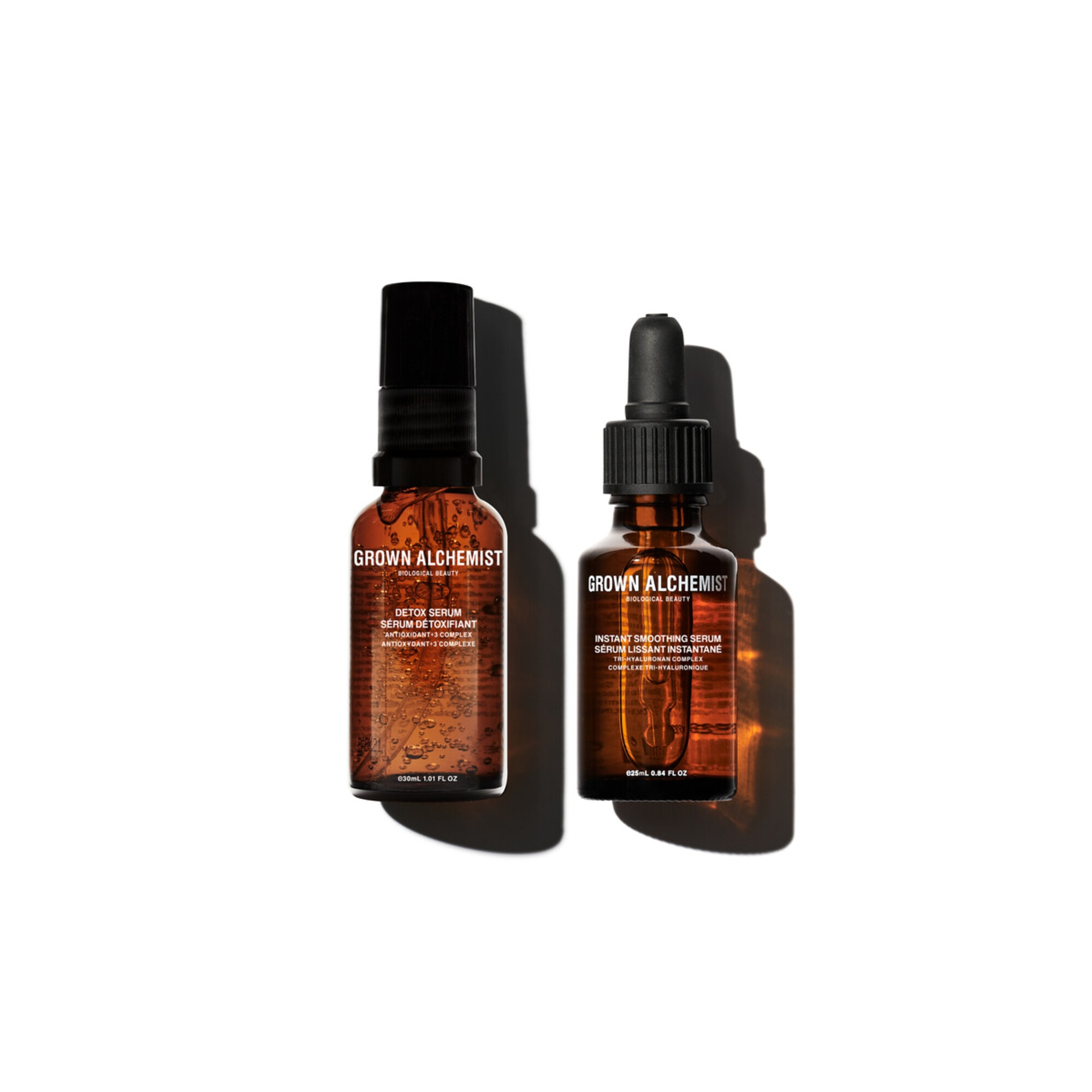 DETOX SERUM: Aqua/Water/Eau, Heptyl Glucoside (Plant/Plante), Cellulose Gum (Plant/Plante), Carrageenan, Benzyl Alcohol, Ceratonia Siliqua (Carob) Gum (Plant/Plante), Sucrose (Plant/Plante), Aloe Barbadensis Leaf Extract, Fructose, Glycerin (Plant/Plante), Withania Somnifera Root (Indian Ginseng/Ashwagandha) Extract, Niacinamide (Vitamin B3/Vitamine B3) (Plant/Plante), Panthenol (Provitamin B5/Provitamine B5) (Plant/Plante), (Antioxidant+3 Complex/Complexe Antioxydants+3) (Plant/Plante), Tocopherol (Vitamin E/Vitamine E) (Plant/Plante), Dehydroacetic Acid, Pelargonium Graveolens (Geranium/Géranium) Leaf Oil, Sodium Phytate (Plant/Plante), Cananga Odorata (Ylang Ylang) Flower Oil, Citral (Plant/Plante), Geraniol (Plant/Plante), Citronellol (Plant/Plante), Linalool (Plant/Plante). (Plant Derived/Dérivé des Plantes). GA006-56-03T. Instant Smoothing Serum: Aqua/Water/Eau, Sodium Hyaluronate (Plant/Plante), Benzyl Alcohol, Dehydroacetic Acid. (Plant Derived/Dérivé des Plantes). GA006-32-01T.