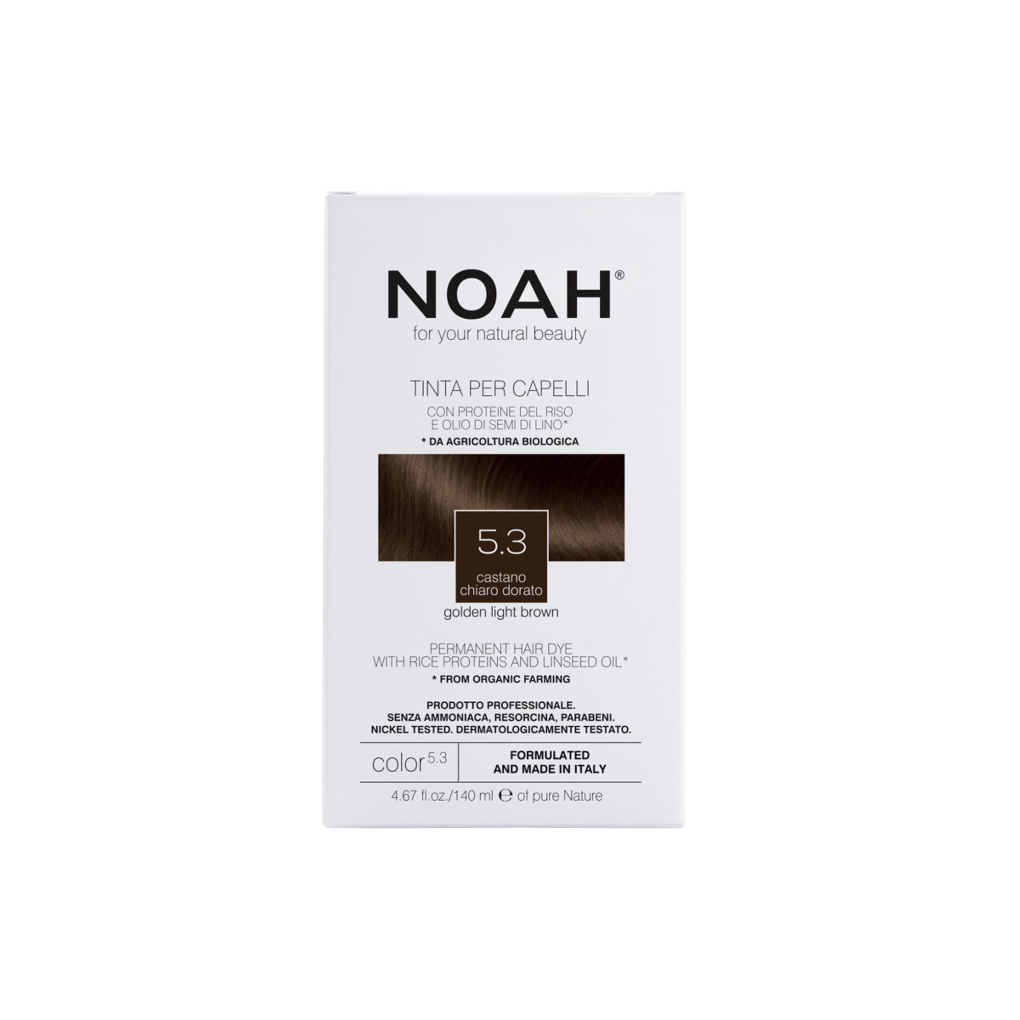 Noah hair color cream. 50mlAqua/Water, Stearic acid, Cocamide mea, Ethanolamine, Cetearyl alcohol, Glycerin, Glyceryl stearate, Palmitic acid, Propylene glycol, Linum usitatissumum (linseed) seed oil, Hydrolyzed wheat protein, Hydrolyzed rice protein, Myristyl alcohol, Bis-Diglyceryl polyacyladipate-2, Sodium hydrosulfite, Ascorbic acid, Tri-C14-15 alkyl citrate, C12-13 alkyl lactate, Parfum/Fragrance, Tridecyl salicylate, Tetrasodium edta, Alpha-Isomethyl ionone, Limonene, Hexyl cinnamal, Linalool, p-Phenylenediamine, N-Phenyl-p-Phenylenediamine, p-Aminophenol, 4-Chlororesorcinol, 2-Methylresorcinol, Toluene-2,5-Diamine sulfate, 4-Amino-2-Hydroxytoluene, m-Aminophenol, 2,4-Diaminophenoxyethanol HCI, 1,5-Naphthalenediol, Oxyquinoline sulfate, 1-Naphthol.From organic farming Noah color revealer emulsion. 75ml Aqua/Water, Hydrogen peroxide, Cetearyl alcohol, Laureth-3, Hexyldecyl laurate, Ceteareth-20, Hexyldecanol, Oxyquinoline sulfate, Etidronic acid.It contains hydrogen peroxide.Noah hair 1.6 color protection shampoo. 15ml Aqua [Water], Sodium coco-sulfate, Cocamidopropyl betaine, Phenoxyethanol, Sodium chloride, Myristyl lactate, Sodium olivamphoacetate, Decyl glucoside, Benzoic acid, Citric acid, Dicaprylyl ether, Tetrasodium glutamate dictate, Glycerin, Origanum majorana oil [Origanum majorana leaf oil], Cananga odorata oil [Cananga odorata flower oil], Dehydroacetic acid, Amyris balsamifera oil [Amyris balsamifera bark oil], Glyceryl oleate, Linalool, Helianthus annuus seed extract [Helianthus annuus (sunflower) seed extract], Hydrolyzed rice protein.