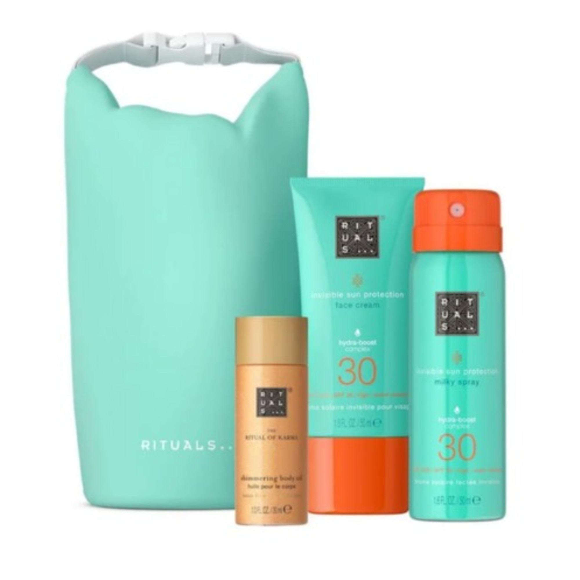 csillámos testápoló olaj, 30 ml; 30 faktoros arcvédő krém; 30 faktoros arcvédő naptej spray, 50 ml