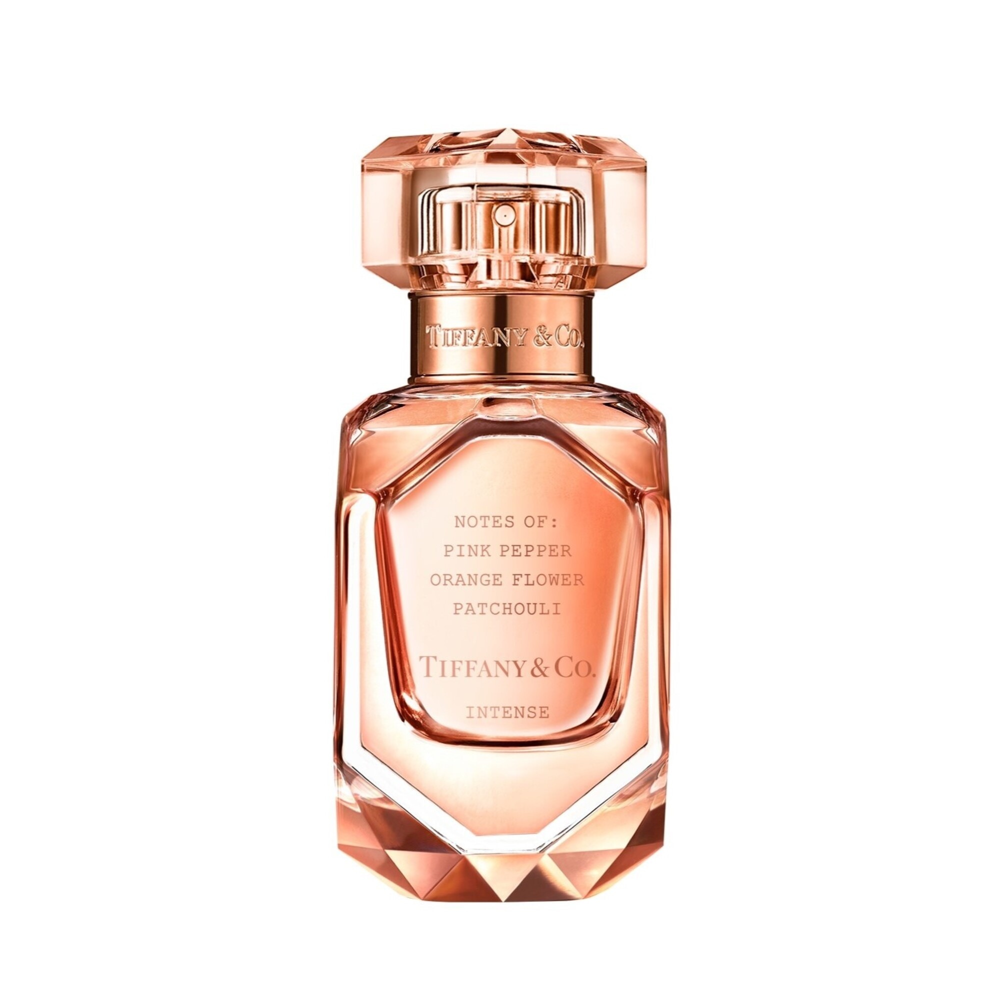 Az illatüveg főhajtás a Tiffany gyémántból és nemesfémekből készített, szemet gyönyörködtető ékszerei előtt. Az üde, rózsás színben pompázó esszencia sugárzó fényárba burkolja az illatüveget, melynek formavilága és metszése a Tiffany rose gold ékszereit varázsolja elénk. Az aprólékos munkát igénylő gyémántcsiszolás az üveg talapzatán és nyakán a Tiffany mestereinek kimagasló szakértelme előtt tiszteleg, a drágakövek szépségét és teljes pompában tündöklő ragyogását megidézve.