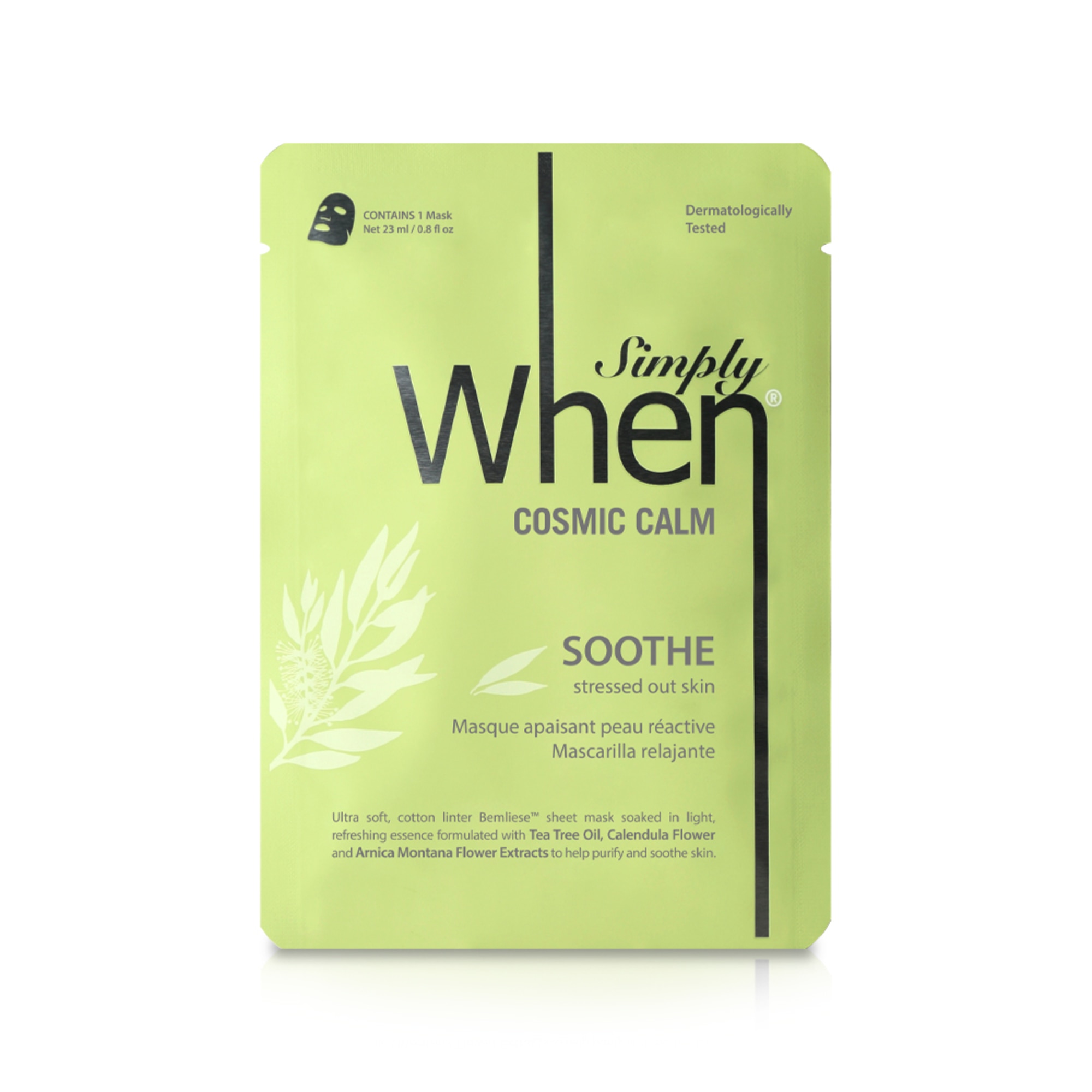 Ha a bőrén láthatóak a stressz jelei, Önnek ajánljuk a Simply When Cosmic Calm Soothe Cotton Linter Sheet maszkot.