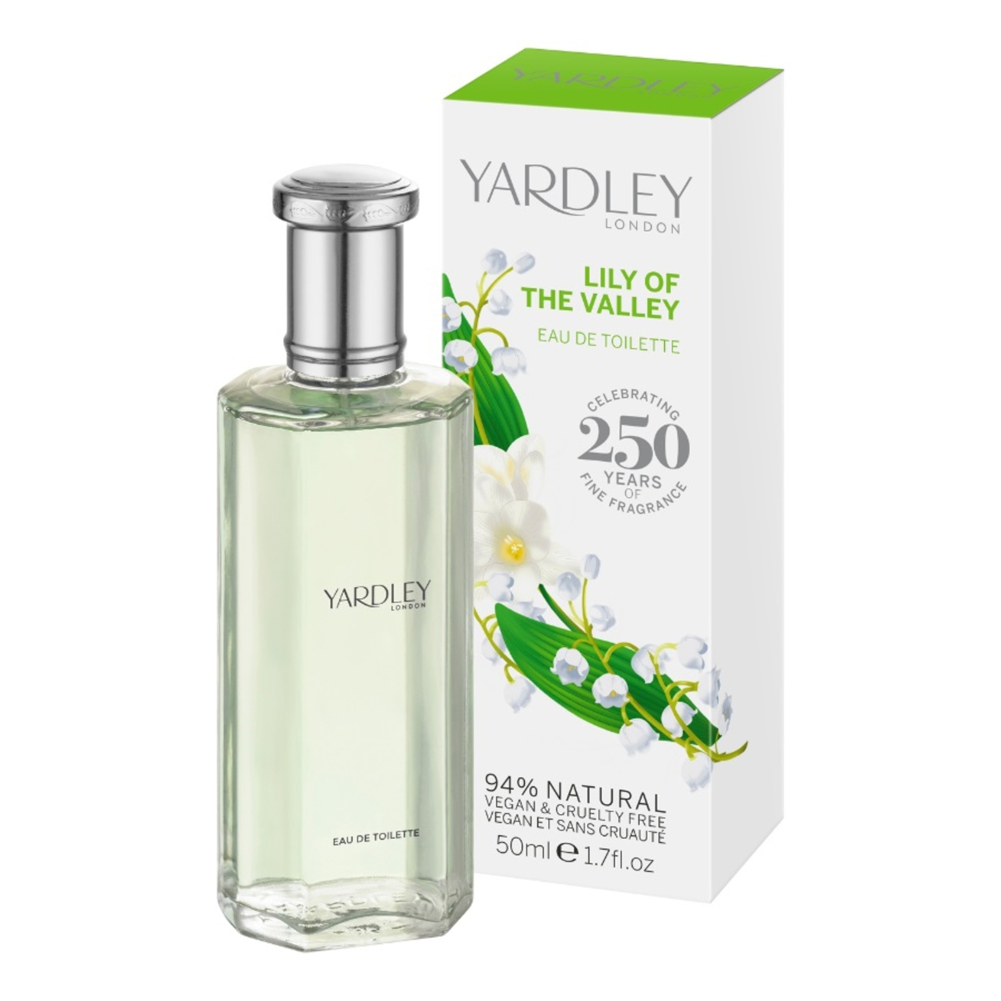 A Yardley Lily of the Valley EDT illatát különböző virágok ihlették.Egy könnyű, nőies illat. Alapjegyeiben gyümölcsös, körtés, míg szívjegyeiben a gyönygyvirág és frézia egy gyönyörű virágcsokor illatát adja vissza. Végül melegebb, pézsmás jegyekkel zárul.A Lily of The Valley 94% -ban természetes összetevőket és növényi eredetű alkoholt tartalmaz. Állatkísérletektől mentes és vegán.